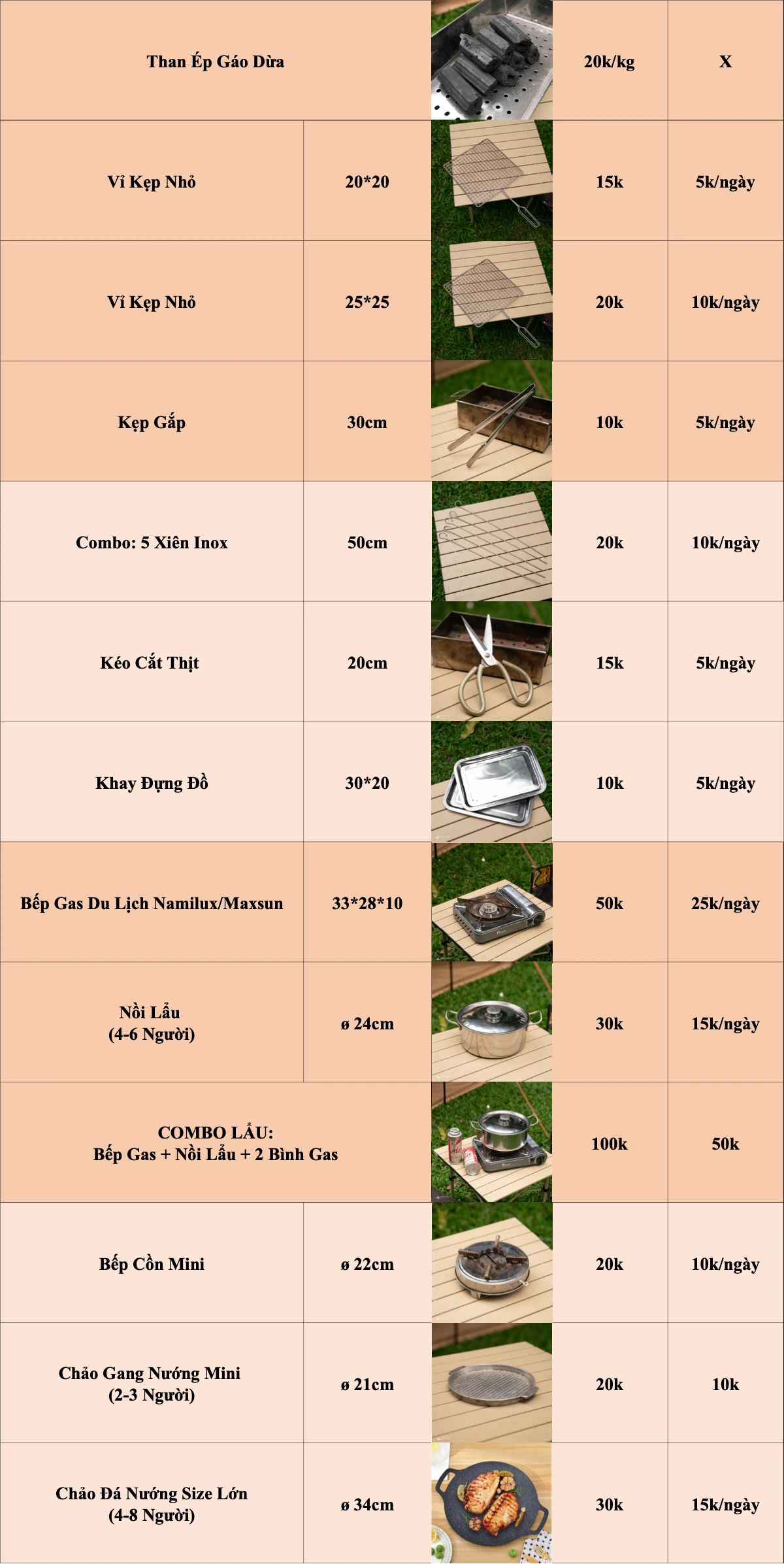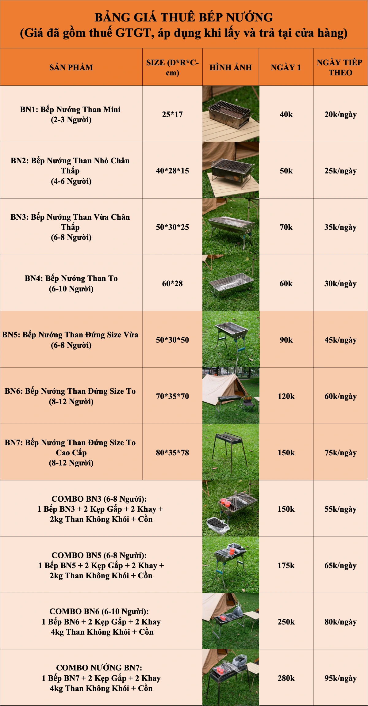 ☘️ Thuê bếp nướng dã ngoại, bếp nướng than, bếp cồn, bếp gas du lịch, ... nhỏ gọn, tiện lợi khi nướng BBQ ngoài trời.