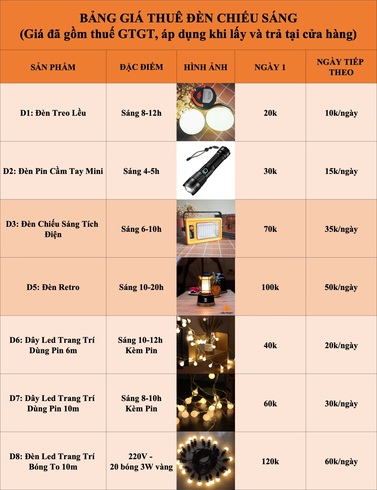 >>> HÌNH ẢNH - THÔNG TIN CHI TIẾT CÁC MẪU ĐÈN CHO THUÊ CLICK ĐỂ XEM