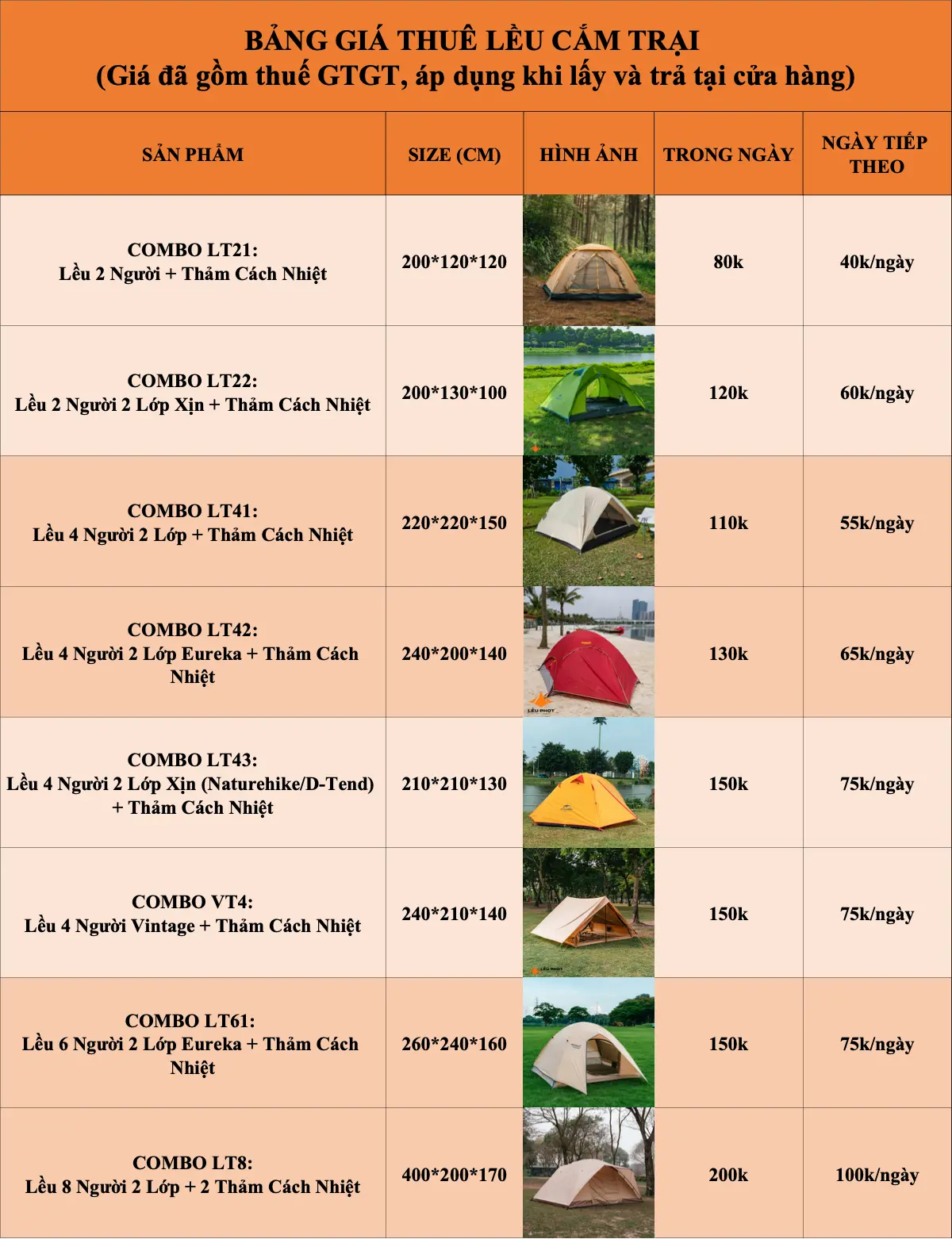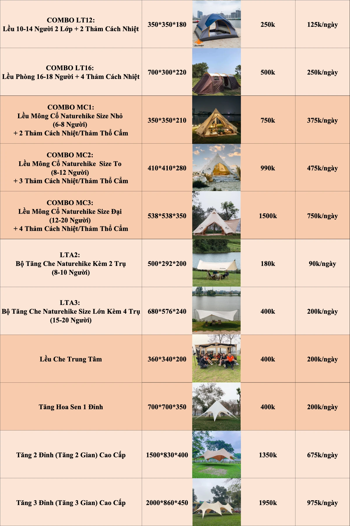 HÌNH THỨC ĐẶT THUÊ LỀU CẮM TRẠI